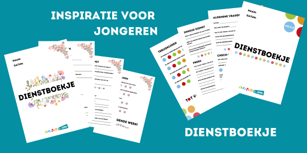 Wil je jouw jongeren aanmoedigen om vollenbak aanwezig te zijn in de dienst? Dan kan dit dienstboekje een steuntje in de rug zijn. Het boekje bevat enkele vragen en kleine werkvormen die jongeren kunnen invullen tijdens de dienst, die betrekking hebben op de inhoud van de dienst.