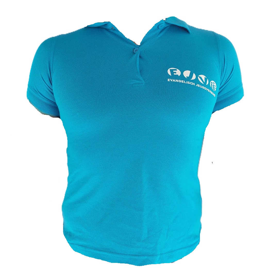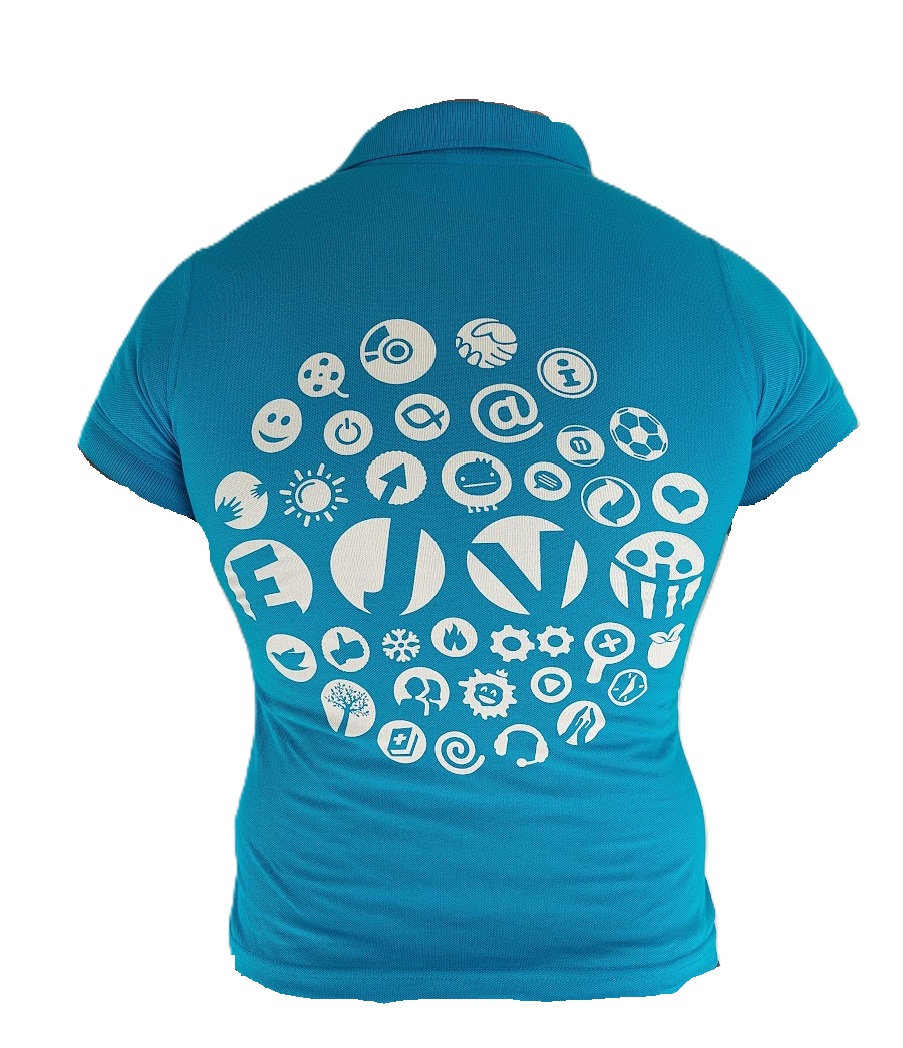Azuurblauw met logo in zeefdruk één-kleurenbedrukking op achterzijde